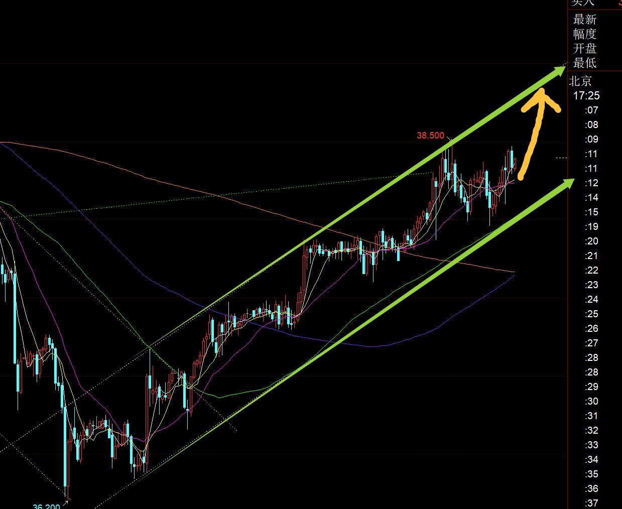Second, silver: yesterday's upward channel remained intact, The road-step-like pull-up broke through high, and finally reached the 38.3 first-line target and broke up;