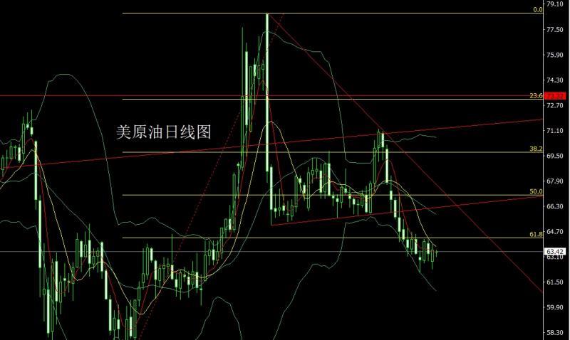 The US crude oil market opened lower at 62.8 yesterday and then first pulled up to 63.43, and then fell back strongly. The daily line was at the lowest point of 62.3, and then the US market rose strongly in the intraday stage. The daily line reached the highest point of 63.88 and then the market consolidated. The daily line finally closed at 63.5, and then the market closed with a medium-positive line with an upper and lower shadow line. After this pattern ended, today's market continued to consolidate at low box. At the point, it fell back to 62.65 and 62.2 today, with the targets looking at 63.5 and 63.8-64.2.