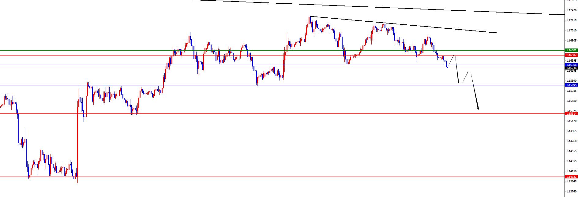 From a multi-cycle analysis, from the perspective of the monthly line level, Europe and the United States are supported at 1.0950, so long-term bulls are treated, and the monthly line ends with a large negative end. Therefore, when you are bullish, you need to pay attention to market adjustments. From the weekly level, the price is supported by the support of the 1.1590 area, and from the perspective of the mid-line, the price decline is temporarily treated as a correction in the mid-line rise. At the same time, it is necessary to pay attention to further retracement in the near future and pay attention to whether it can break down. From the daily level, the daily line is currently supported at 1.1630 as time goes by. This position has been punctured. Follow-up attention is paid to the actual closing below this position.According to the four-hour level, the price continues to be under pressure after falling below the four-hour resistance at the beginning of the week. At the position, the price is temporarily focused on the resistance range of 1.1650-60, so the price can be under pressure under the four-hour resistance. In the first hour, the European session fell to the previous day's low again. If the price is extremely weak, the early trading high will continue to be suppressed. Otherwise, conservatives will continue to pay attention to the four-hour resistance suppression, and the 1.1590-1.1530 area below.
