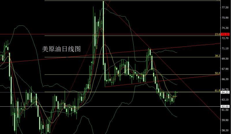 The US crude oil market opened at 63.64 yesterday and then the market first rose to 64.26 before the market fell strongly. The daily line was at the lowest point of 63.29 and then the market rose strongly. The daily line reached the highest point of 64.46 and then the market consolidated. The daily line finally closed at 64.24 and then the market closed with a medium-positive line with a lower shadow line slightly longer than the upper shadow line. After this pattern ended, the long stop loss of 63.2 for 63.7 today, and the target was 64.3 and 64.8 and 65.