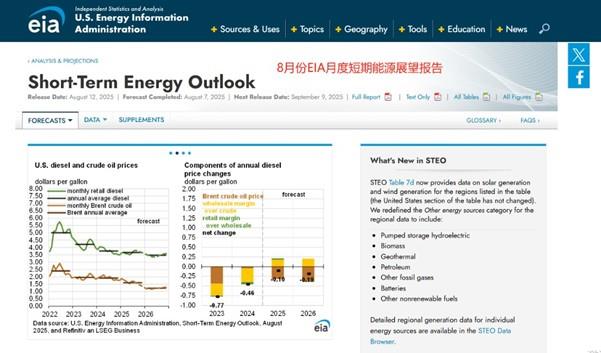 This Wednesday, at 0:00, EIA will release its monthly short-term energy outlook report, focusing on the forecasts of crude oil demand growth and price trends in the report. In the short-term energy outlook report in August, EIA expects Brent crude oil to fall sharply, with a low of $58. The reason for the pessimistic forecast is that oil inventories increase after OPEC+ member states decide to accelerate the pace of production increase. Last Sunday, OPEC+ The new food conference shows that the pace of production increase has further accelerated, with about 137,000 barrels of oil production per day. Based on this, EIA may be more pessimistic about the future oil price trend in its September report. The international topics that EIA is most concerned about in August are Trump tariffs, conflicts between Israel and Iran, and expansion of non-OPEC supply quotas. As August, factors affecting crude oil demand and prices have changed. India's purchase of Russian oil and the US debt is in sudden The conflict between Russia and Ukraine has become the focus of market attention. How EIA views these hot topics, and the judgment of the final impact of these events determines the impact of the report on U.S. crude oil.