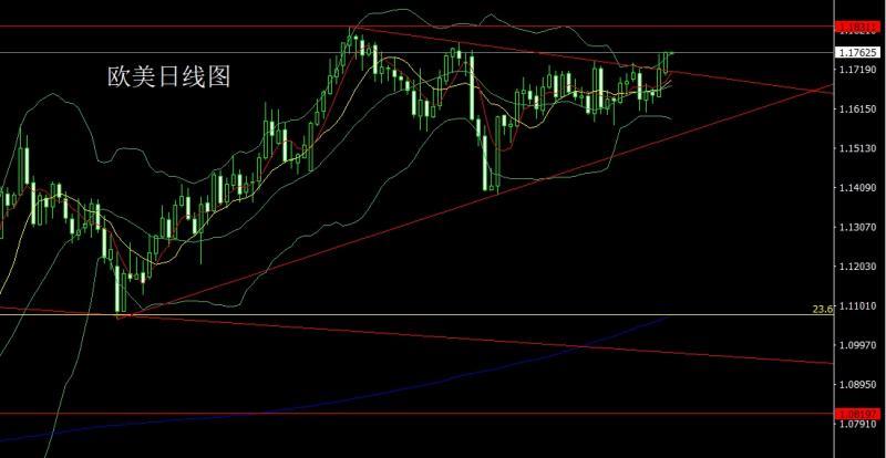 Yesterday, the European and American markets opened low at 1.17123 and then the market fell first. The daily line was at the lowest point of 1.17027 and then the market fluctuated strongly. The daily line reached the highest point of 1.17654 and then the market consolidated. The daily line finally closed at 1.17626 and then the market closed with a large positive line with a lower shadow line slightly longer than the upper shadow line. After this pattern ended, the daily line effectively broke the pressure, and today's market rebound continued to be long. At the point, the stop loss was more than 1.17400 today, and the target was 1.017650 and then 1.17800 and 1.18000.