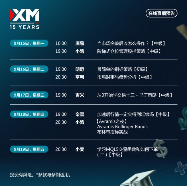 Hello everyone, today XM Forex will bring you the "【XM Group】: Chinese Online Live Lecture This Weekly Preview". Hope it will be helpful to you! The original content is as follows: