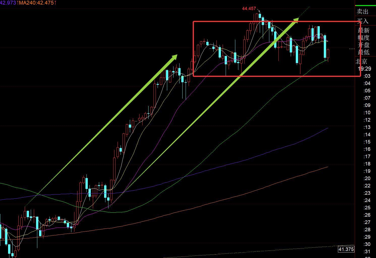 In silver: It also broke down and lost the support of the lower track of the upward channel overnight. Today, it temporarily entered a relatively high range. The resistance was below 44.3-44.4, and the support was above 43.6 and 43.3, and it was oscillating;