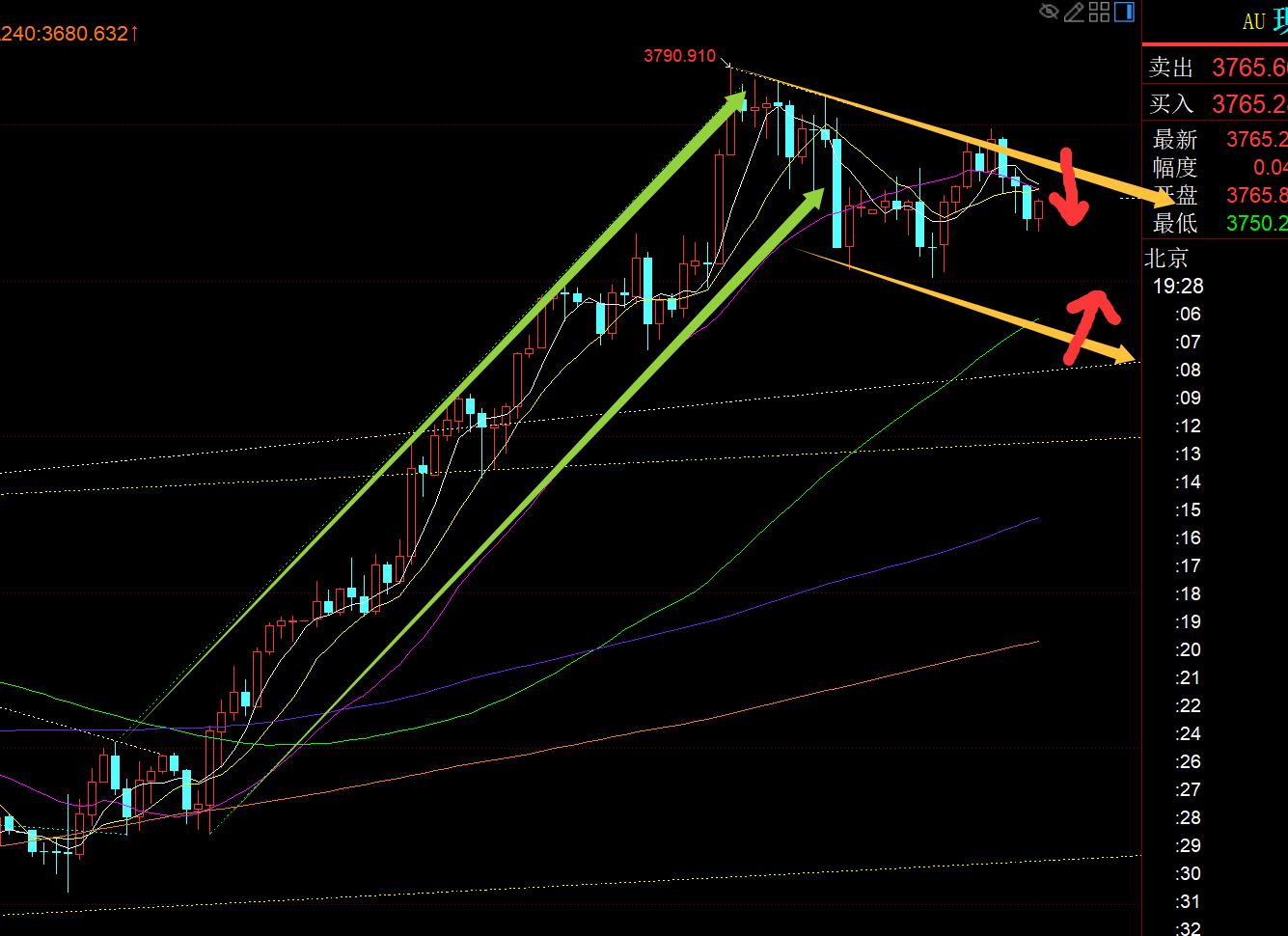 First, gold daily line level: Yesterday closed a long upper shadow, small positive K, which suspended the strong unilateral pull-up to a certain extent, and there are signs of fluctuation correction today. In addition, around the National Day holiday, gold prices generally suppress and fall in the previous few days of the holiday, and gold prices generally stabilize and continue to strengthen in the next few days of the holiday. You can refer to the last year's move; another point is that whenever a large integer mark is touched, there will be a wave of backtesting, this time it is the 3800 mark; xm217.combined with the above points, today is inclined to look at the downward correction of the oscillation, and wait until it is close to the short-term moving average for 5 or 10 days before it stabilizes. Last year, the oscillation was suppressed and corrected to the middle track, and the holiday was about to end, and then stabilized and rose.Continue to continue to move forward with a continuous positive unilateral trend, will this cycle continue to take place this year? I personally think that this time it is probably a bit overhang, because the pull-up force this year is significantly stronger than last year. At this time, there is still nearly 160 meters away from the middle rail. If you test the middle rail, you may lose the last unilateral starting point, which is not conducive to strong stability; unless there is a situation, the price fluctuates narrowly and slowly declines for several days, dragging until after the National Day, and then the middle rail climbs upward at a speed of 20 meters per day. After October 1, the middle rail will basically move upward by 3700, so the overall decline in these 5 trading days before the holiday can only be maintained at a distance of 60-70 meters. Anyway, the position of the middle rail moving upward in the later period must be above 3630. A little farther; then if you want to maintain the decline space so small, but it needs to be delayed for several days, you can only do it by consolidating and slow down at a high level (the alternating yin and yang is the best way to move); today's 5 moving average is above 3720, and when you slide down close to here, you can be bullish when you are low;