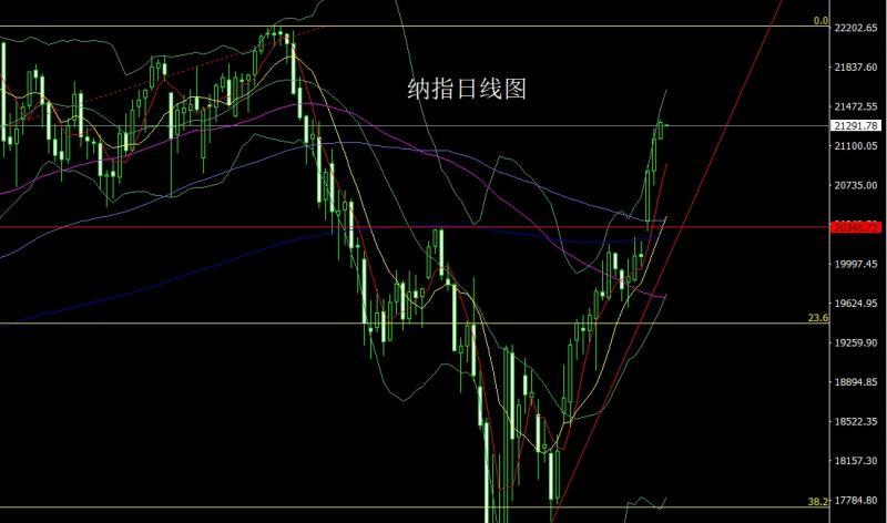 Índice NASDAQ: la pérdida de parada 21180 de hoy 21080, el objetivo es 21350 y 21450 y 21550.