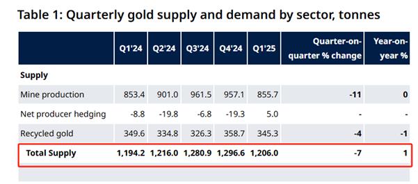 según los datos de la Asociación Mundial de Oro, en el primer año de este año, los minas produjeron 855.7 toneladas de oro, recuperaron 345.3 thes de la Asociación de Oro, y el primer año, los minas produjeron 855.7 toneladas de oro, se recuperaron 345.3 thon Suministro total de 1.206 toneladas de oro, una disminución del 7% en xm217.comparación con el cuarto trimestre de 2024. La lógica tradicional cree que la cantidad total de oro en circulación es relativamente grande, por lo que el precio del oro se ve débilmente afectado por el lado de la oferta. Sin embargo, el suministro total de oro disminuyó en un 7% de mes a mes, especialmente la cantidad de oro producido en minas disminuyó en un 11% mes a mes, por lo que aún debe prestarse atención. Aunque el oro es especial, también es una mercancía. Los precios de los productos básicos se verán afectados por el lado de la oferta. Si el suministro total de oro continúa disminuyendo en el segundo trimestre, aumentará la posibilidad de que los precios internacionales del oro mantengan una tendencia alcista.
