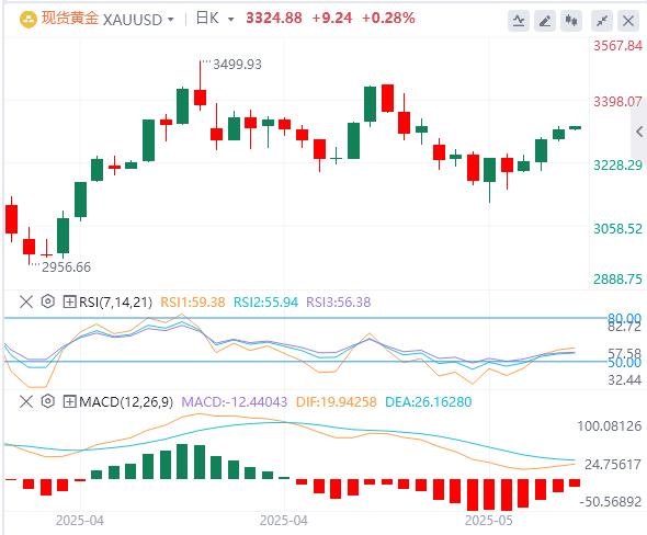 el jueves, que cotiza en oro alrededor de 3324.88. Los precios internacionales del oro han experimentado recientemente un fuerte aumento, aumentando para el tercer día de negociación consecutivo el miércoles, estableciendo un nuevo máximo semanal de $ 3324.76/onza, y finalmente cerró a $ 3315.14/onza, un aumento de un solo día de aproximadamente 0.78%. Esta ola de tendencia ascendente está impulsada principalmente por el debilitamiento del índice de dólar estadounidense y la intensificada incertidumbre geopolítica global, que muestra el encanto único de oro xm217.como un activo tradicional de seguridad segura. Este día de negociación se publicará en datos de PMI en los países europeos y estadounidenses en mayo, cambios en el número de reclamos iniciales de desempleo en los Estados Unidos y el número total anualizado de ventas de viviendas existentes en abril. Los inversores deben prestarle atención. Además, continuaremos prestando atención a la situación del xm217.comercio internacional, la situación geopolítica y las noticias relacionadas con la reunión del G7, y prestando atención a los discursos de los funcionarios de la Reserva Federal.