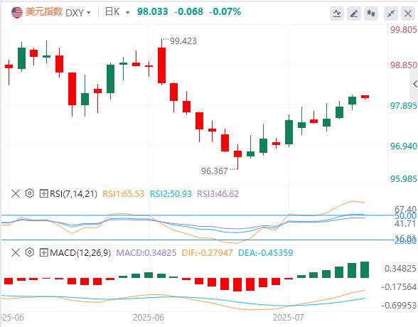 El 15 de julio, se cotiza temprano en el mercado asiático el martes, Beijing Time, el índice de dólar estadounidense rondaba 98.03. El lunes, el índice del dólar estadounidense mantuvo un rango limitado de fluctuaciones, alcanzando con éxito la marca 98 en la sesión de negociación tardía, y finalmente cerró 0.24% a 98.071. El rendimiento del Tesoro de EE. UU. Continuó aumentando, con el cierre de rendimiento del Tesoro de los Estados Unidos a 10 años en 4.439%, y el rendimiento del Tesoro de los Estados Unidos a 2 años en 3.919%. Spot Gold abrió alto y cerrado bajo, alcanzó un nuevo máximo de tres semanas intradía y luego cedió todas las ganancias en el día, finalmente cerró un 0,37%, cerrando a $ 3343.52/onza; Spot Silver una vez se paró por encima de la marca 39, llegando a un nuevo máximo desde septiembre de 2011, y luego dio un giro brusco y cayó bruscamente, finalmente cerró un 0,62% a $ 38.14/onza. A medida que la guerra xm217.comercial reavivó las perspectivas de la demanda del mercado petrolero, los precios internacionales del petróleo se desplomaron. El petróleo crudo WTI cayó continuamente en la sesión de EE. UU. Y finalmente cerró un 2.56% a $ 65.86 por barril; El petróleo crudo Brent cerró un 2.16% a $ 68.53 por barril.