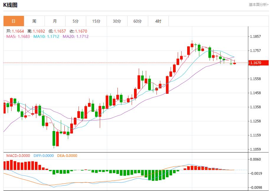Euro/USD: a partir de 20:23 Tiempo de Beijing, el Euro/USD aumentó, ahora en 1.1669, un aumento de 0.04%. Antes de la Bolsa de Nueva York, el precio de (EURUSD) cayó en el nivel intradía reciente después de que escapó con éxito de las condiciones de sobrecarga de (RSI) e ingresó al nivel de sobrecarga, que se sumó a los factores negativos del movimiento de la pareja a medida que se negoció dentro del rango del canal de corrección bajista a corto plazo.