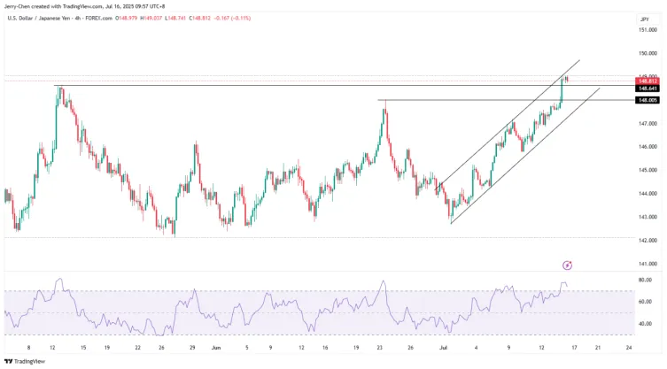 Los Estados Unidos y Japón aumentaron en casi 149 durante tres días consecutivos y establecieron un nuevo alto desde principios de abril. Japón celebrará una elección del Senado este fin de semana, y la coalición gobernante puede perder su mayoría. Si el partido de la oposición toma la mayoría, puede promover una política de estímulo fiscal más grande para aumentar la carga de la deuda de Japón, lo que ha desencadenado una venta de la venta de los bonos gubernamentales a largo plazo de Japón, y el rendimiento ha aumentado considerablemente, lo que también ha provocado que el banco de las perspectivas de aumento de las tasas de interés de Japón cambie repentinamente. El yen puede permanecer débil a corto plazo.