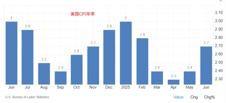 El IPC de EE. UU. Aumentó un 2,7% interanual en junio, en línea con las expectativas, más alto que el valor anterior del 2.4%. El CPI central aumentó del 2.8%al 2.9%, más bajo del 3%esperado, ambos alcanzan sus niveles más altos desde febrero.