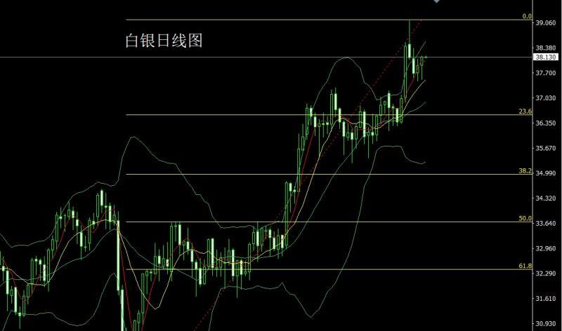 El mercado de plata abrió a 37.914 ayer y luego el mercado subió por primera vez. El mercado cayó fuertemente. La línea diaria estaba en 37.511 en la posición más baja y luego el mercado aumentó fuertemente. La línea diaria alcanzó la posición más alta en 38.16 y luego el mercado se consolidó. La línea diaria finalmente se cerró en 38.128 y luego el mercado se cerró en un patrón de cabezal de martillo con una larga línea de sombras inferiores. Después de que terminó este patrón, el mercado de hoy retrocedió mucho. En el momento, la larga posición de 37.6 de ayer se redujo y la pérdida de parada siguió a 37.5, y los 37.7 de hoy se llevaron a cabo en 37.5. El objetivo fue 38.2 y 38.4-38.6.