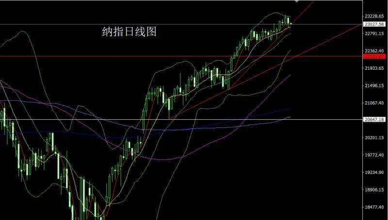 NASDAQ ÍNDICE Se abrió a 23185.68 ayer y el mercado aumentó ligeramente. Después de dar una posición de 23210.78, el mercado cayó fuertemente. El punto más bajo del día se dio a la posición de 22950.83. Después de consolidar el mercado, la línea diaria finalmente cerró a 23040.72. Luego, la línea diaria se cerró con una línea de sombra inferior muy larga. Después de que terminó este patrón, 23170 Bort Stop Loss 23230 hoy, con el objetivo de 23000 y 22950 y 22850.