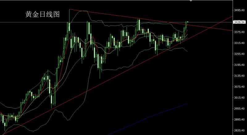 ayer, el mercado de oro se abrió a 3397 en la mañana y luego aumentó ligeramente. Después de dar una posición de 3402.9, el mercado cayó fuertemente. Poco a poco alcanzó el punto más bajo de 3382.9 y luego aumentó fuertemente. El triángulo se rompe 3420 y luego alcanzó el punto más alto de 3433.6. Después de que el mercado se consolida. La línea diaria finalmente se cerró a 3430 y luego se cerró con una gran línea positiva con una larga línea de sombras inferiores. Después de que terminó este patrón, la línea diaria rompió efectivamente la presión. El rebote del mercado actual continuó siendo largo. En el momento, el 3418 de hoy es más conservador 3415 es más parada 3411, y el objetivo es 3434. El descanso es 3442 y rango de presión 3450-3453.