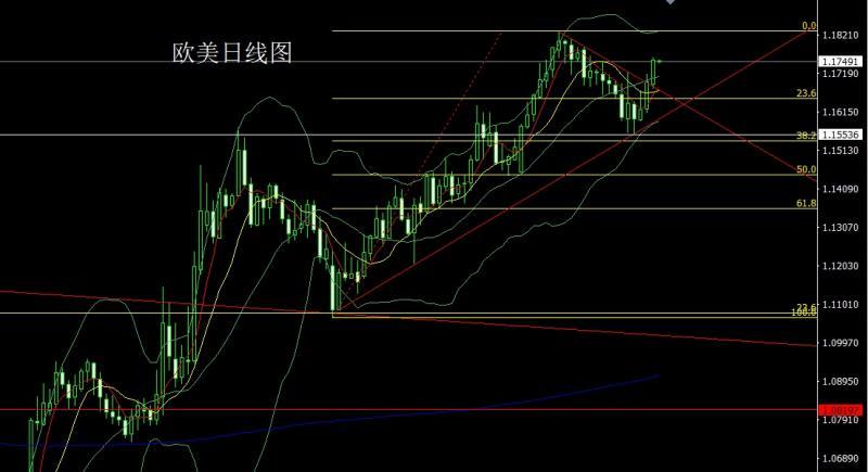 Los mercados europeos y estadounidenses se abrieron ayer a 1.16893 y luego el mercado cayó primero para dar una posición de 1.16776. El mercado subió fuertemente temprano en la mañana. La línea diaria alcanzó la posición más alta de 1.17609 y luego el mercado se consolidó. La línea diaria finalmente se cerró en 1.17533 y luego el mercado se cerró con una gran línea positiva con una línea de sombra inferior ligeramente más larga que la línea de sombra superior. Después de que terminó este patrón, la pérdida de parada de más de 1.17200 hoy en día fue de 1.17000, y el objetivo fue 1.7500 y 1.17700 y 1.18000.