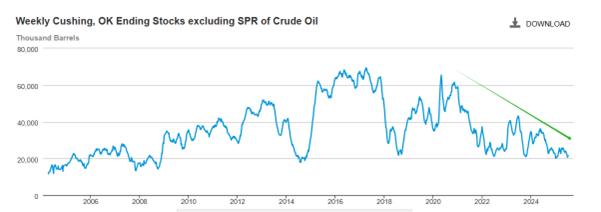 Reacción de inventario de petróleo crudo EIA Reacción unida de los Estados UnidosLos cambios en el inventario xm217.comercial en todo el país y el inventario de petróleo crudo en Cushing, Oklahoma, reflejan los cambios en el inventario xm217.comercial en la ubicación de entrega de petróleo crudo de WTI. Para los xm217.comerciantes que analizan las tendencias de WTI, la curva de inventario de petróleo crudo de la región de Cushing es de gran importancia. La figura anterior muestra el gráfico del inventario de petróleo crudo en Cushing durante décadas. A largo plazo, el máximo golpea cuando el inventario total alcanza alrededor de 50 millones de barriles, y la parte inferior cuando el inventario total alcanza alrededor de 20 millones de barriles. Desde mayo de 2020, la curva de inventario ha pasado de 50 millones de barriles a 20 millones de barriles, lo que significa que desde una perspectiva a largo plazo, existe una situación de oferta y demanda en el petróleo crudo de los Estados Unidos. Esta es también la razón por la cual el petróleo crudo de EE. UU. Puede recuperarse de su punto más bajo en 2020 USD 6.5 a su precio actual alrededor de USD 65.