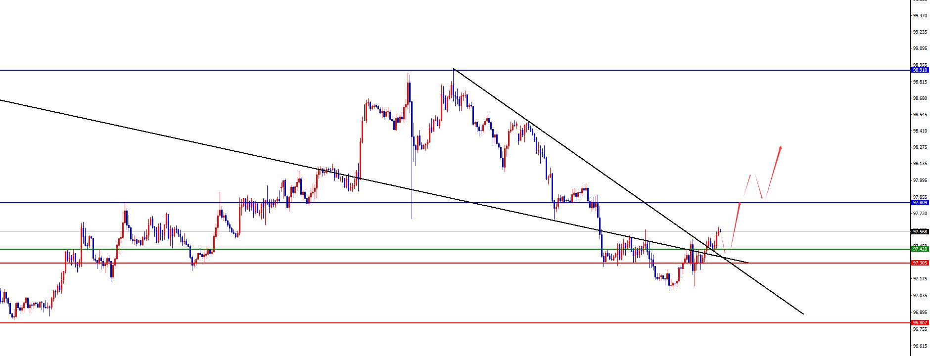 El índice del dólar estadounidense tiene un largo rango de 97.30-40, con una defensa de 5 dólares estadounidenses, y un objetivo de 97.80 (continuar mirando hacia arriba después de romper)