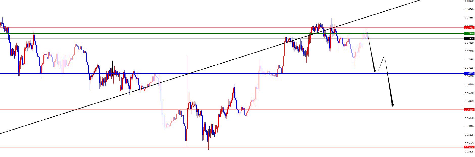 Europe and the United States have a short range of 1.1760-70, defense is 40 points, target 1.1690-1.1660