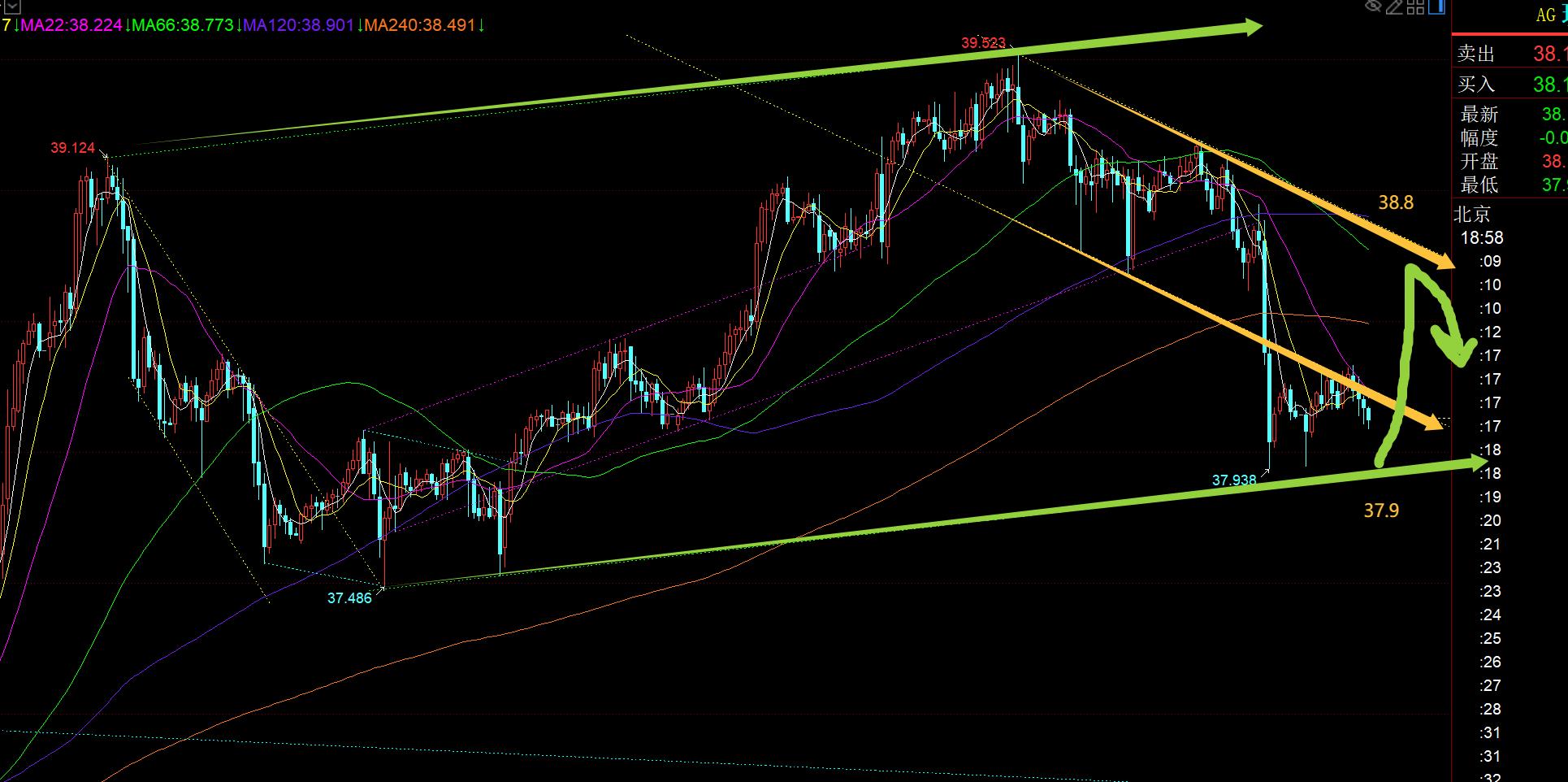 Segundo, en términos de plata: el informe de investigación del viernes pasado señalado, dos soporte, uno es 38.45 y el otro es 37.9. El soporte anterior se descompone y el último soporte solo alcanza un punto estable, y cae en una cierta fluctuación;