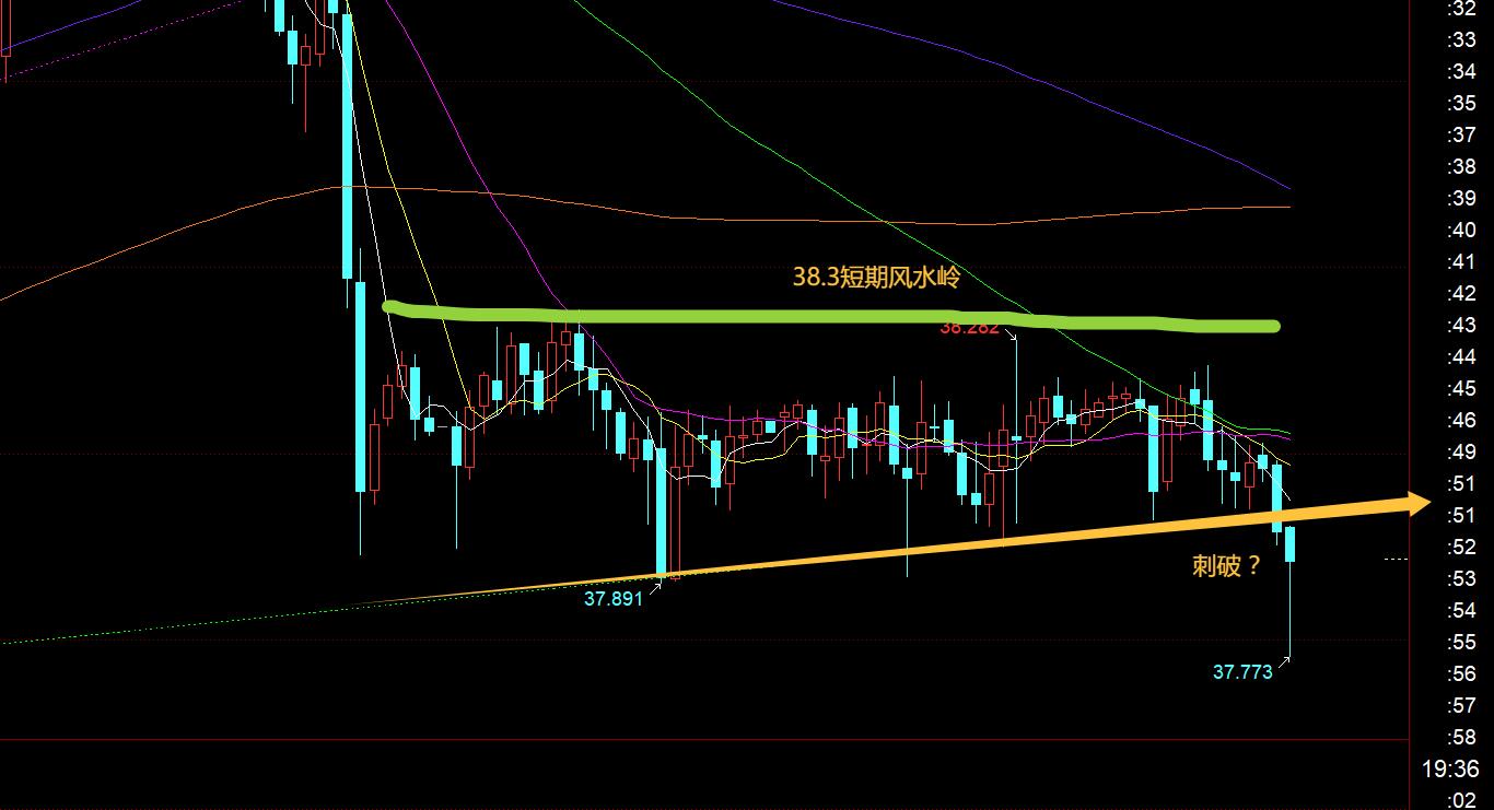 Second, silver: yesterday's fluctuation was not large, the upper and lower tracks of 37.9 were still supported, but the resistance below 38.3 was still suppressed;