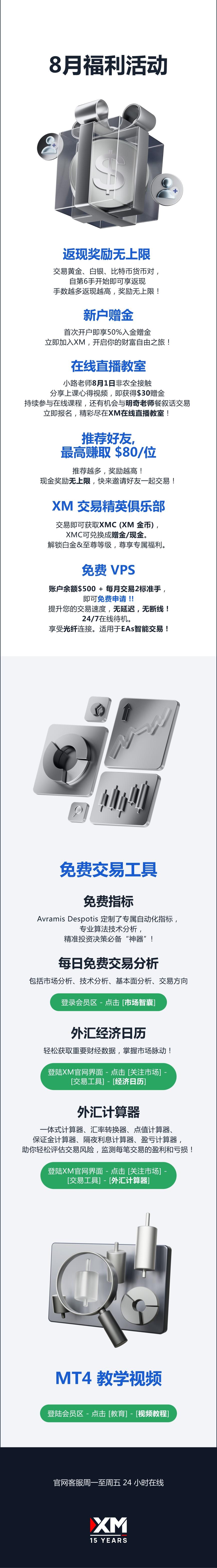 Se acerca el verano en agosto, y la popularidad del mercado continúa calentándose. Es un buen momento para examinar las estrategias y usar fondos de manera flexible. Agarra las súper recompensas para el aniversario XM15, y no hay límite en las recompensas de reembolso. xm217.comparta su experiencia de aprendizaje en el aula en línea y obtendrá un bono de $ 30. ¡Únete ahora y da la bienvenida a una nueva ola de oportunidades de mercado!