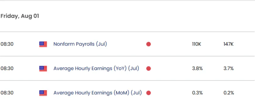 Se espera que los EE. UU. Agregan 110,000 empleos en julio, con un salario promedio por hora que aumente de 3.7% en el mismo período a 3.8%. La evidencia de un mercado laboral sólido puede arrastrar el euro/dólar, ya que lleva a la Reserva Federal a mantener tasas de interés más altas por períodos de tiempo más largos.