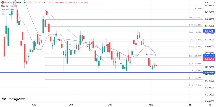 Después de anunciar la adquisición de Cecomy, el precio de las acciones de JD.com generalmente carecía de una respuesta positiva, y el precio de las acciones continuó permaneciendo en un nivel bajo desde mediados de julio, prestando atención al apoyo clave al final del rango de negociación desde finales de mayo alrededor de HK $ 120. Sin embargo, desde una perspectiva a más largo plazo, debido a los catalizados por el progreso de la transacción, todavía hay espacio para al alza, y el valor a largo plazo depende del efecto de implementación sinérgica. Si la "hora europea por hora" y la optimización de costos se logran con éxito, se espera que el precio de las acciones rompa el máximo anterior.