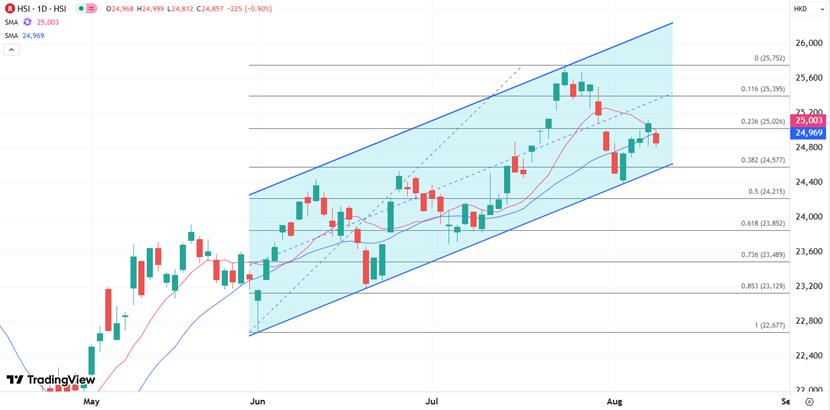XM Hong Kong Stocks: 25,000 se convirtió en una resistencia clave, el índice Hang Seng detuvo cuatro aumentos consecutivos, bajo presión durante la consolidación