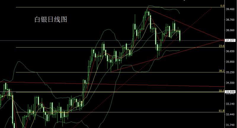 El mercado plateado se abrió a 38.024 ayer y luego cayó primero. El mercado fluctuó y rosa. La línea diaria alcanzó la posición más alta de 38.139 y luego cayó fuertemente. La línea diaria estaba en la posición más baja de 37.262 y luego se consolidó. La línea diaria finalmente se cerró a 37.377 y luego se cerró con una gran línea negativa con una línea de sombra superior e inferior. Después de que terminó este patrón, continuó siendo corto hoy. En este momento, fue 37.7 Pérdida de parada corta de 37.9 hoy. El objetivo a continuación es 37.3 y 37.1, y cayó por debajo de 36.9 y 36.6.