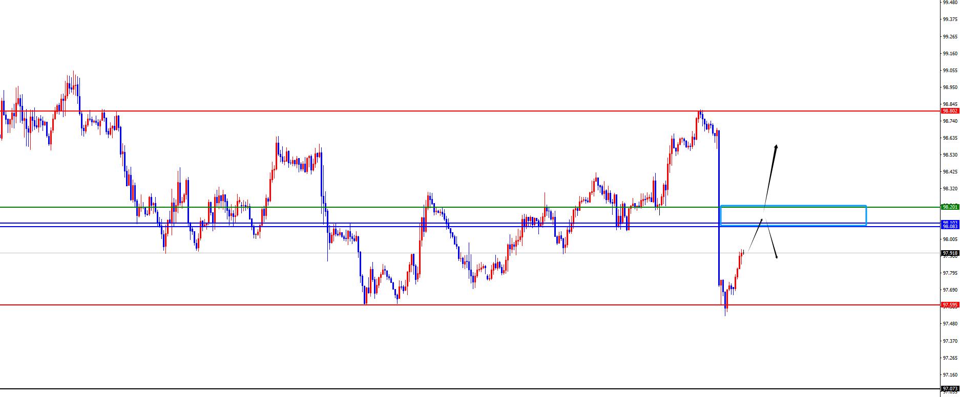De un análisis de ciclo múltiple, el nivel semanal ha sido recientemente respaldado por el soporte semanal de arriba y hacia abajo. Esta semana, el enfoque está en la posición 98.10 para estabilizarse. Una vez que se mantenga firme, los toros a mediano plazo continuarán aumentando. A nivel diario, en la línea diaria, los precios del oro actualmente fluctúan a niveles bajos. Aunque el precio actual está por debajo de la resistencia diaria, el precio general aún debe prestar atención a las ganancias y pérdidas de la posición de resistencia diaria de 98.10, y el precio aún debe prestar atención al desempeño de la empresa en el futuro. Desde la perspectiva de cuatro horas, la tendencia de cuatro horas es la clave para nuestro énfasis en las tendencias de precios a corto plazo. Actualmente, la resistencia de cuatro horas se encuentra en el área 98.20. El precio debe ser cauteloso antes de estabilizarse en esta posición, y luego prestar atención a una continuación adicional después de que se estabiliza en el futuro. Desde una perspectiva por hora, el mercado ha mostrado un rendimiento más al alza después de la fuerte disminución el viernes pasado, así que tenga cuidado con los pedidos cortos del índice del dólar estadounidense y se centre en el rendimiento de un aumento adicional en el futuro.