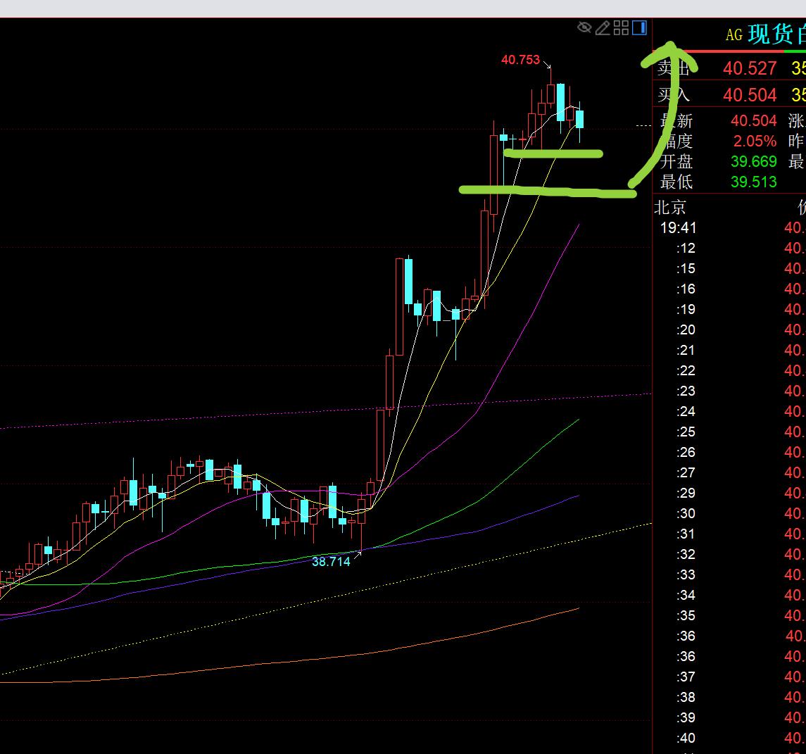 segundo, en plata: porque nos preocupaba que pudiera tener un retroceso circular el viernes, el 38.9 a corto plazo de Silver también siguió el retroceso, y solo lo dio a 38.7. Está planeado para estabilizarse a 38.5 y luego ir de vuelta a alcista, pero no le dio una oportunidad.Al final, el mercado estadounidense se recuperó y rompió 39.1 y fue eliminado, y aumentó a casi 40 marcas. Hoy, continuó otra ola de pull-up. La posición larga inferior que se había mantenido en el nivel bajo en las primeras dos semanas de 36.65 expandirá rápidamente las ganancias y logrará el efecto de la banda;
