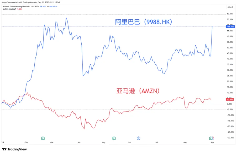 U.S. Los mercados bursátiles cerraron el lunes debido a las vacaciones del Día del Trabajo, con los principales índices europeos en general en aumento. Impulsado por noticias positivas de Alibaba (+18.5%), el índice Hang Seng aumentó un 2,1% el lunes. La siguiente figura muestra la xm217.comparación del crecimiento de Alibaba y Amazon este año.