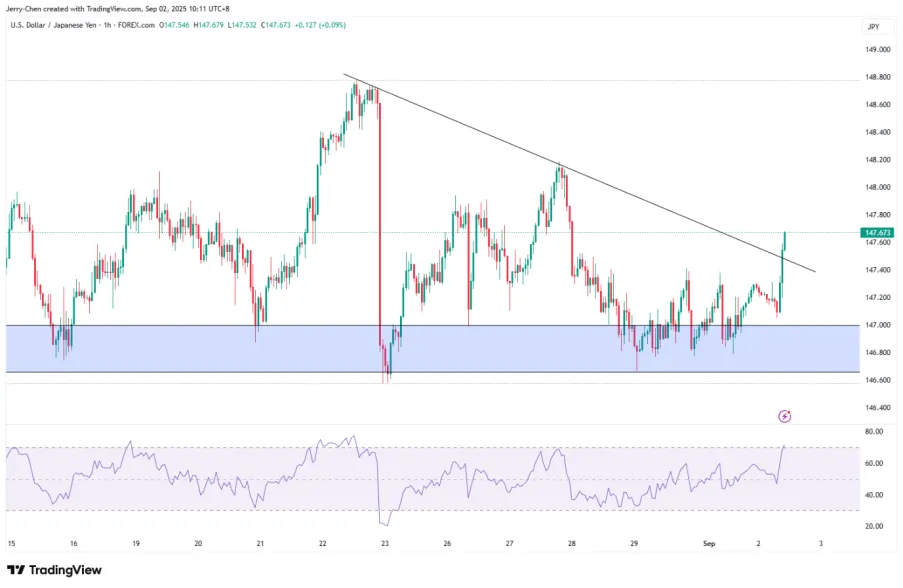 EE. UU./Japón se recuperó después de obtener múltiples soporte en la línea 146.80. Después de romper la línea de tendencia descendente, se aumentó la probabilidad de continuar la tendencia ascendente. Los Bulls una vez más apuntaron al objetivo al avance más alto 148.20 y 148.75. Oscilar hacia arriba es la dirección de observación principal en la dirección de observación principal actual.