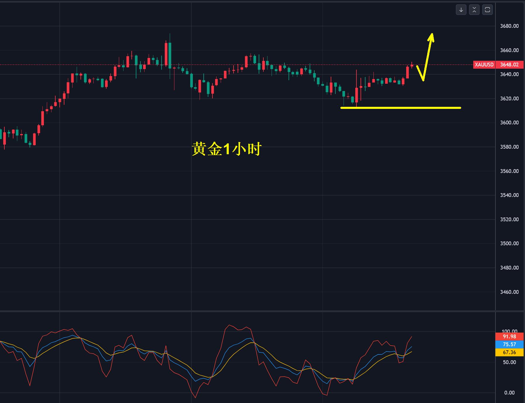 Una hora, el precio del oro se reinició y aumentó después de fluctuar y consolidación, aumentando a $ 3,650 en la mañana. La tendencia alcista general no ha cambiado, y todavía se trata principalmente de retirarse y anhelar, mientras que el punto de defensa aún es de $ 3,610. Cuando se pierda, considere ajustar ideas.