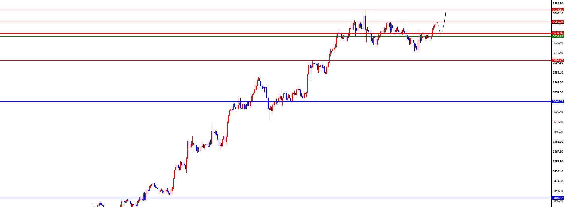 A partir de un análisis de ciclo múltiple, primero observe el ritmo mensual. El precio mensual terminó en agosto. En general, el precio sigue funcionando alcista. Desde la perspectiva a largo plazo, la posición 3000 es la cuenca de la tendencia a largo plazo. El precio se puede tratar más a largo plazo. Desde el nivel semanal, el precio ha roto la resistencia clave después de las recientes fluctuaciones continuas y ha seguido alcanzando un nuevo máximo histórico. Actualmente, la cuenca semanal larga y corta está en 3400. El precio está por encima de esta posición y la línea media se trata más. Desde el nivel diario, debemos prestar atención al apoyo regional 3540 por el momento, y la banda por encima de esta posición debe tratarse con más frecuencia. Desde una perspectiva de cuatro horas, cerró por debajo del soporte de cuatro horas el martes, pero se rompió nuevamente en la mañana de hoy, y el rango de 3635-40 a corto plazo se convirtió en el apoyo de cuatro horas, y el precio se trató más por encima de esto. La sesión de la mañana funcionará fuertemente en una hora. Si el precio quiere seguir siendo fuerte, el primer xm217.comercio bajo se convertirá en una posición clave. Si no se rompe, se tratará con más frecuencia.