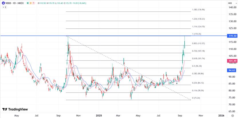 XM Hong Kong stocks: debido a los rumores de cooperación con Apple esta semana, el precio de las acciones de Baidu aumentó más del 9% en el lunes, hasta el nivel alto de octubre, debido a los rumores de la cooperación con Apple, esta semana, y el precio positivo de la década de octubre de octubre de octubre de octubre, y continúa con el precio positivo de la última semana. Esta mañana y abrió alto, con casi el 10% de ganancias intradía. La última noticia dice que Alibaba (09988) y Baidu han xm217.comenzado a usar chips diseñados internamente para entrenar sus modelos de inteligencia artificial, reemplazando parcialmente los chips de Nvidia. Esta mañana, Alibaba abrió un 5,9% más alto y Baidu abrió un 3,8% más alto.