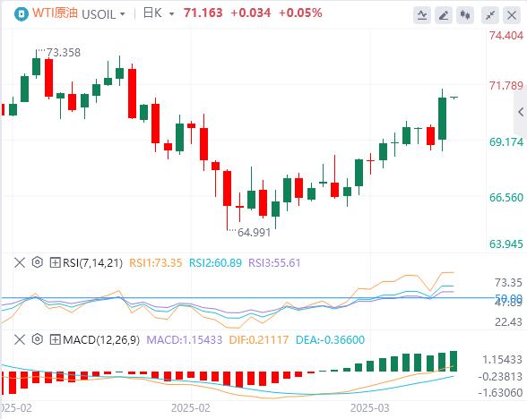 El martes, el cotizado de petróleo crudo que cotiza alrededor de 71.16. El presidente de los Estados Unidos, Trump amenazó con imponer aranceles del 25% al 50% a los xm217.compradores de petróleo rusos, un movimiento que provocó un ligero aumento en los precios del petróleo, pero los xm217.comerciantes son escépticos de esto y las ganancias son limitadas. La organización de los países exportadores de petróleo (OPEP) de la respuesta a las posibles interrupciones en el suministro de petróleo de Rusia ha agregado una capa de incertidumbre a la perspectiva de petróleo a corto plazo. El mercado espera que el presidente estadounidense Trump anuncie aranceles recíprocos el 2 de abril, y los aranceles automovilísticos entrarán en vigencia el 3 de abril. Los inversores también están prestando atención a las perspectivas de la política monetaria de la Reserva Federal. El informe de empleo no agrícola de EE. UU. Se publicará esta semana. Este día de negociación se lanzará. ISM Fabricación de PMI en marzo y sacude los trabajos en los Estados Unidos en febrero. Los inversores deben prestar atención.