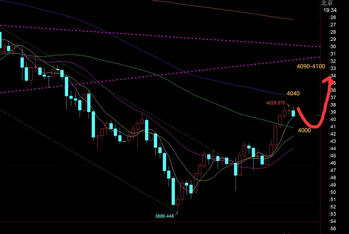 En segundo lugar, el nivel dorado de 4 horas: en este momento se está probando el 4025 a mitad de camino. Una vez que la línea de cierre a las 22 horas atraviese efectivamente la estación, aumentará aún más. Junto con la divergencia inferior del macd, se espera que la parte superior pruebe la resistencia de 66 días 4146;