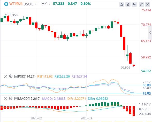 El miércoles, el xm217.comercio de petróleo crudo fue de alrededor de 57.23. Los precios internacionales del petróleo crudo cayeron bruscamente. A pesar de un repunte en los mercados de valores globales, las preocupaciones sobre una recesión global causadas por la escalada del conflicto xm217.comercial chino-estadounidense dominaron el sentimiento del mercado, lo que hace que los precios del petróleo caigan a su nivel más bajo en cuatro años. Según los funcionarios de la Casa Blanca, Estados Unidos impondrá aranceles del 104% a los bienes importados de China desde las primeras horas del miércoles porque China no ha retirado su 34% de contra-tarifa antes de la fecha límite del mediodía de Trump establecido el martes.