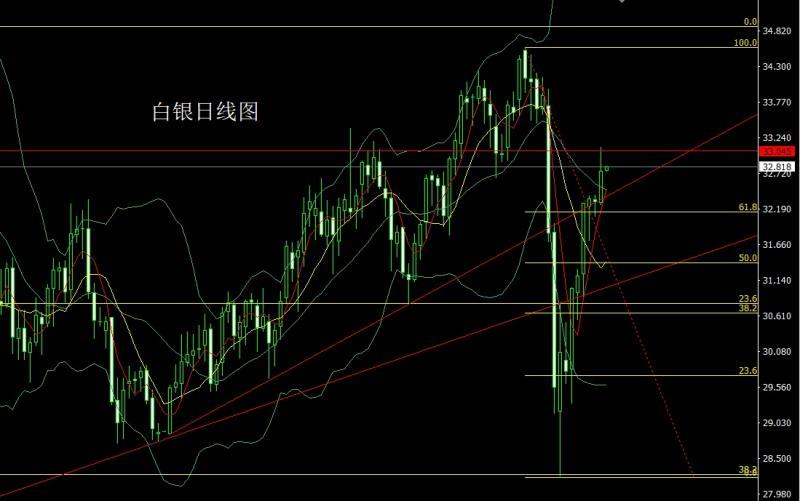El mercado de plata abrió a 32.287 ayer y el mercado cayó primero. El mercado fluctuó y rosa. La línea diaria alcanzó la posición más alta de 33.115 y luego el mercado se consolidó. La línea diaria finalmente se cerró a 32.738 y luego el mercado se cerró con una línea media positiva con una larga línea de sombras altas. Después de que este patrón terminó, la pérdida de parada larga 32.45 fue de 32.25 hoy, y el objetivo fue 32.75 y 33.15 y 33.35-33.5.