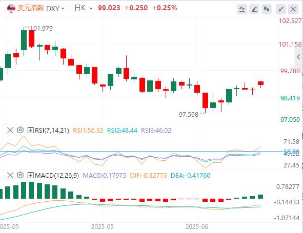 vendredi dernier, en raison de l'incertitude de la guerre au Moyen-Orient et de son impact possible sur l'économie mondiale, l'indice du dollar américain a atteint la plus forte augmentation hebdomadaire de plus d'un mois, et la ligne quotidienne est restée stable. À l'heure actuelle, le prix du dollar américain est de 99,02.