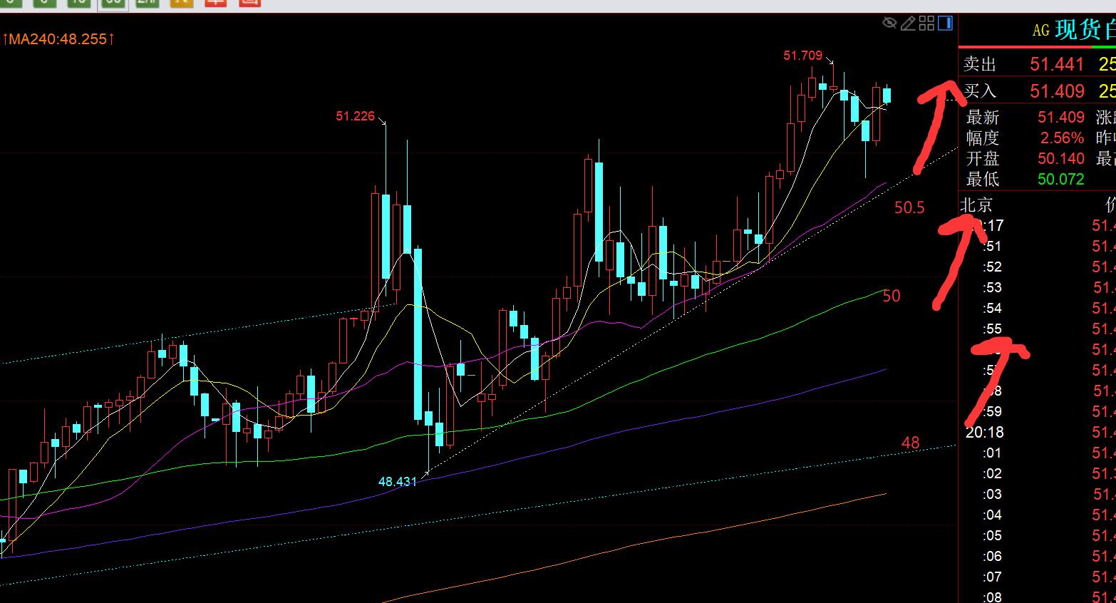 Deuxièmement, en termes d'argent : la volatilité a augmenté rapidement au cours des deux derniers jours, et un léger mouvement au cours de la journée est de 0,4 à 0,5, xm217.comme mentionné sur le marché asiatique vendredi dernier, ceux qui sont audacieux peuvent directement poursuivre la hausse après la cassure. jusqu'à 50, avec l'objectif de 51 en place, mais c'est vraiment difficile à défendre à ce moment-là, à moins que la bande ; le marché européen a fortement augmenté, atteignant à nouveau le plus haut de la nuit de 51,1-51,2, et le marché américain a suivi la tendance haussière, mais il est dommage qu'il ait reculé un peu plus, juste percé, puis le marché américain a tiré vers le haut pour atteindre l'objectif initial ;