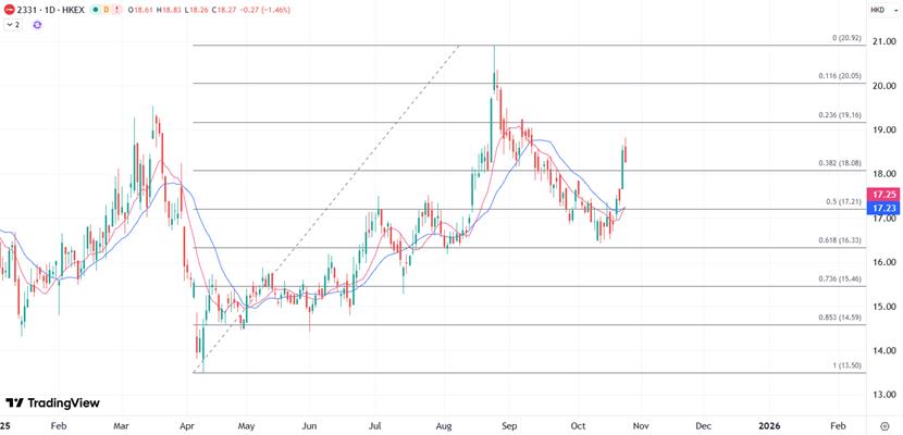 Par exemple, l'entrée de Li Ning dans la plateforme de vente au détail instantanée a mis en avant des exigences plus élevées en matière de sélection en magasin, d'efficacité de l'emballage et de personnel. Si le processus n’est pas géré correctement, cela peut augmenter les coûts d’exploitation d’un seul magasin. Les plateformes de vente au détail instantanée facturent généralement une certaine xm217.commission et les promotions peuvent être plus fréquentes. Vous devez faire attention à leur impact final sur la marge bénéficiaire nette du produit. Le cours des actions de Li Ning a augmenté de manière significative du jour au lendemain aux États-Unis, mais les actions de Hong Kong n'ont pas suivi le mouvement aujourd'hui, atteignant un nouveau sommet depuis le 10 septembre, puis reculant. S'il clôture en dessous de 18 HK$ au cours de la journée, il subira des pressions pour tomber à 17,20 HK$. A ce moment-là, l'attention sera portée au support clé constitué par les principales moyennes mobiles du graphique journalier.