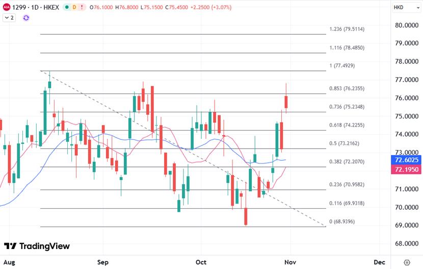La valeur des nouvelles entreprises atteint un autre point positif, le cours de l'action AIA se rapproche de son précédent sommet