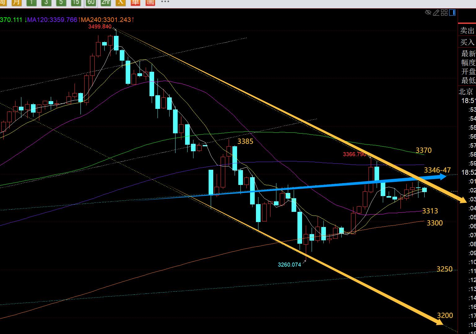 Third, golden hourly line level: From the above figure, a wave of upward rushing in the morning forced through the upper track of the blue channel in the early stage, and then supprimé et retourné sur ce canal dans l'après-midi, qui a formé une certaine perforation fausse; De plus, à partir du canal jaune, la session européenne a consolidé de justesse la ligne REBOND HIGH Point 3342, juste sous pression sur la piste supérieure. Si cette chaîne est efficace, elle devrait se poursuivre ce soir. Il y a un support moyen à court terme et une moyenne mobile annuelle ci-dessous, en se concentrant sur 3313, 3300, puis à la baisse de 3293, 3260, etc.; Bien sûr, il peut également y avoir des canaux jaunes inefficaces ou percés, de sorte que le point de portage clé, Feng Shuée, fait toujours attention aux points correspondants de la piste supérieure du canal bleu, environ 3346-47, puis de façon inattendue à la hausse est une résistance de 66 jours 3 370, cette moyenne mobile est le tournant de la force de ce cycle. Ce n'est qu'en franchissant et en se tenant fermement que l'ajustement à la baisse peut se terminer et revenir à la situation haussier;