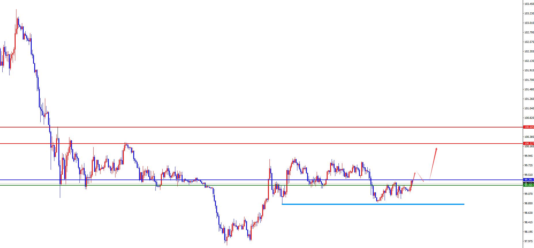 Da un'analisi multi-ciclo, il prezzo viene soppresso nell'area di resistenza 103,90, quindi dal punto di vista a medio termine, la tendenza dell'indice del dollaro USA sarà più ribassista. A livello giornaliero, il prezzo viene soppresso a livello di resistenza dell'area 99,40, quindi il venditore a breve termine opererà dal punto di vista della banda, ma il prezzo si romperà di nuovo e si fermerà sulla resistenza giornaliera. Il supporto di quattro ore a breve termine è 99.30. Il prezzo rimarrà relativamente rialzista a breve termine. La parte superiore del mercato prestarà attenzione ai guadagni e alle perdite della resistenza quotidiana. Una volta che il prezzo si rompe, la banda successiva dovrebbe iniziare un'ondata di aumento verso l'alto. Si prega di prestare attenzione al ritmo del mercato.