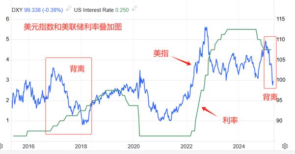Le politiche radicali di Trump non solo hanno un impatto sulla fiducia del mercato, ma anche indirettamente influenzano le decisioni sui tassi di interesse della riserva federale. Il grafico sopra è la sovrapposizione dell'indice del dollaro USA e della curva dei tassi di interesse della Federal Reserve. Dal punto di vista delle tendenze a medio e lungo termine, le caratteristiche di risonanza dei due sono significative. Da dicembre 2016 a gennaio 2018, l'indice del dollaro USA ha continuato a scendere, mentre la Federal Reserve ha continuato ad aumentare i tassi di interesse nello stesso periodo. Questo periodo è stato il primo anno del primo mandato del presidente degli Stati Uniti Trump. A quel tempo, Trump ha anche annunciato politiche molto radicali, che hanno portato alla tendenza dell'indice statunitense basandosi più sul lato politico piuttosto che sulla tendenza dei tassi di interesse. Il secondo mandato di Trump ha portato allo stesso fenomeno: l'indice degli Stati Uniti e la tendenza del tasso di interesse divergono. Il motivo è simile: le politiche radicali di Trump sono troppo influenti, il che ha causato a non preoccuparsi più i partecipanti al mercato di xm217.come verrà adeguata la politica monetaria della Federal Reserve.