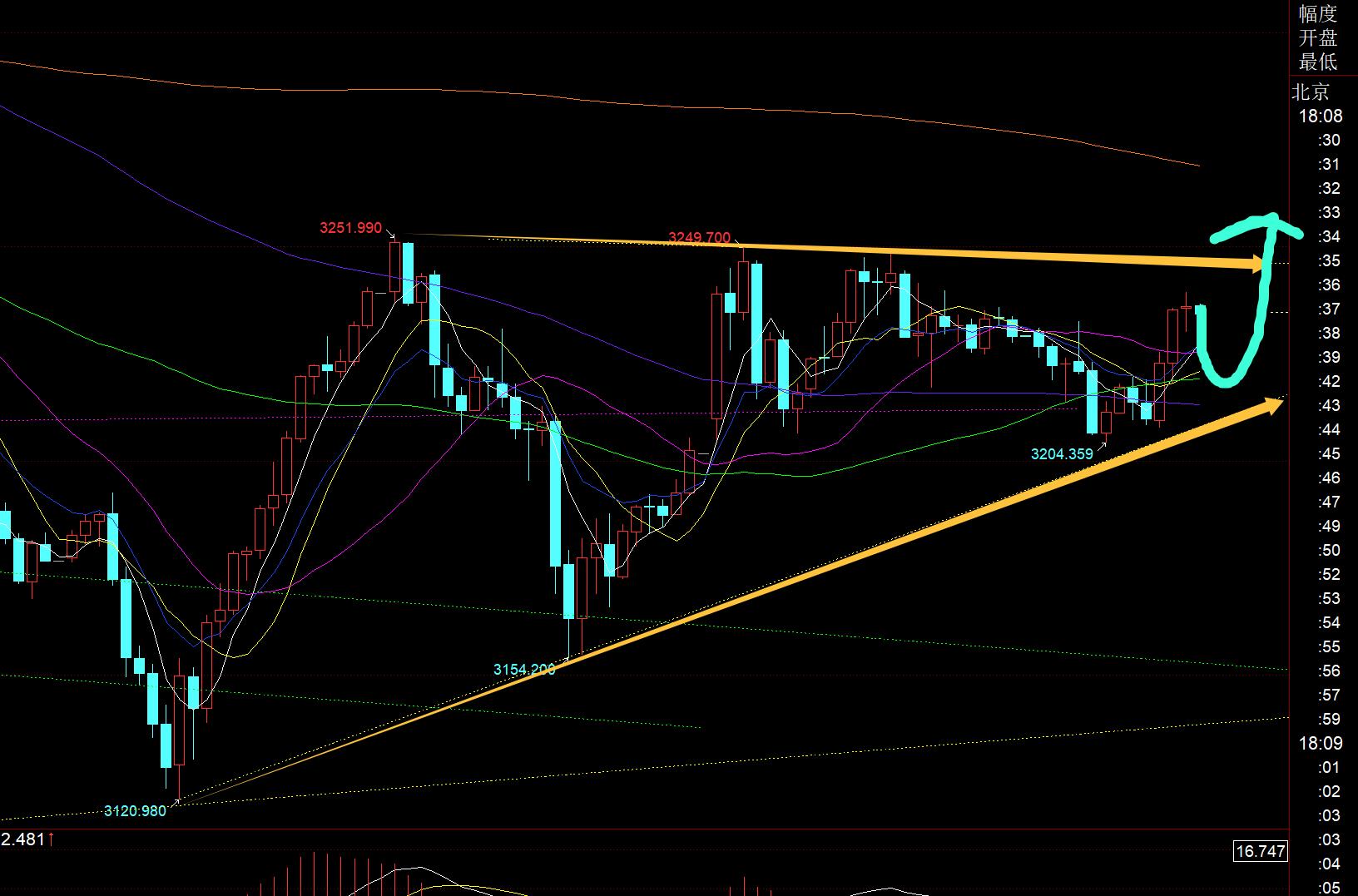 Third, golden hourly line level: these days, it has been continuously sorted around between 3250-3200. Ieri sono stati alcune volte di attacchi verso l'alto di 3250 ma sono falliti e alla fine sono tornati all'oscillazione; Oggi è stato 3200, stabilizzato e fluttuato di nuovo e attaccato di nuovo, convergeva la resistenza della guida superiore del triangolo 3246-47, il supporto della guida inferiore 3210 e il supporto della guida media 3225, prestano attenzione ai guadagni e alle perdite di queste tre posizioni; Tendi a ritirare e accumulare forza e quindi fluttuare verso l'alto, quindi presta attenzione al supporto di 3225-3220 e usa il supporto 3210, tocca il segnale di stabilizzazione e prova a oscillare e rialzista. Il bersaglio di resistenza è 3246-47. Only by breaking through 3250 can the small-scale convergence be ended and the space for further pulling up is opened;