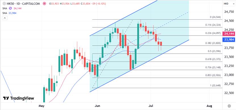 Le azioni di Hong Kong hanno funzionato male nella seconda metà della scorsa settimana e oggi hanno ritardato il loro declino. Poiché il mondo esterno presta attenzione al periodo tariffario in avvicinamento, le azioni di Hong Kong sono temporaneamente dominate da aggiustamenti tecnici a causa della mancanza di notizie. L'indice HK50 è diminuito per l'ultimo giorno consecutivo e ha temporaneamente detenuto la scorsa settimana, ma 23600 potrebbe essere ancora testato xm217.come supporto attuale. Il supporto più critico di seguito è nella parte inferiore del canale verso l'alto, mentre la resistenza è concentrata nell'intervallo della media mobile principale del grafico giornaliero, che raccoglie il segno di 24.000.